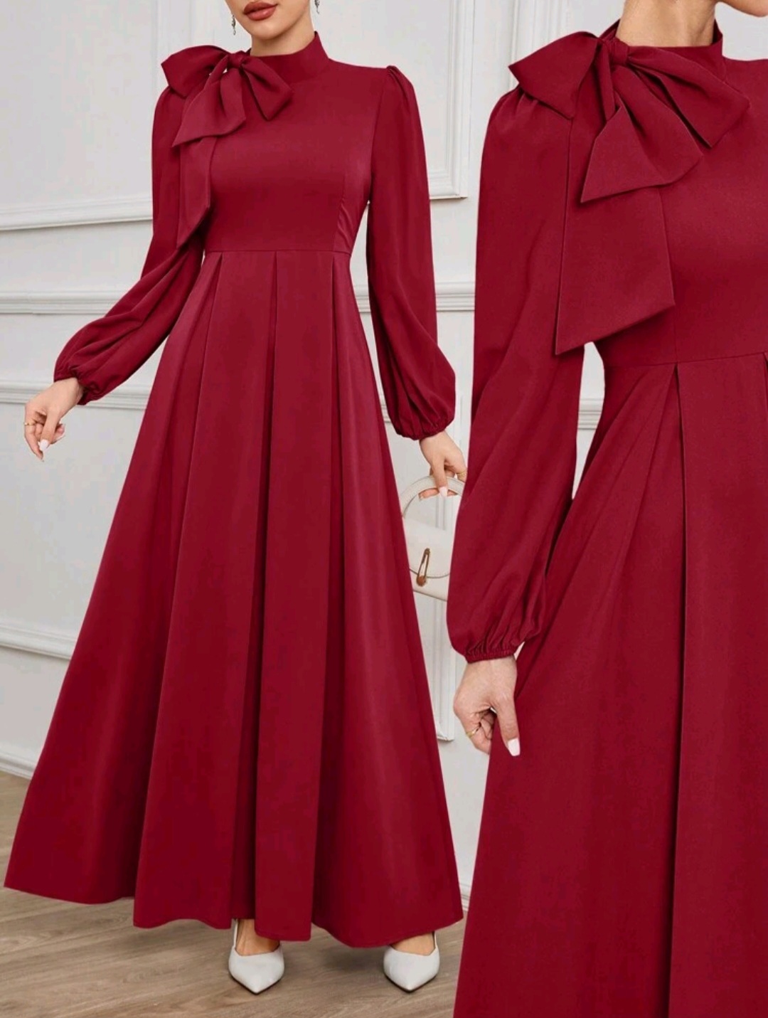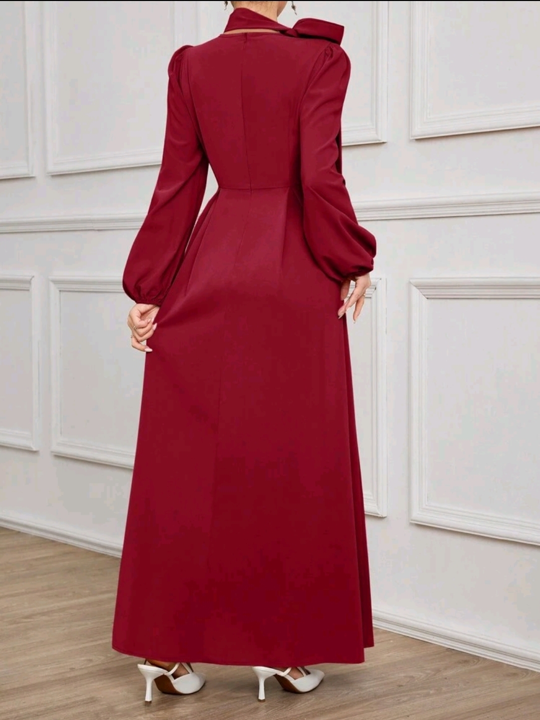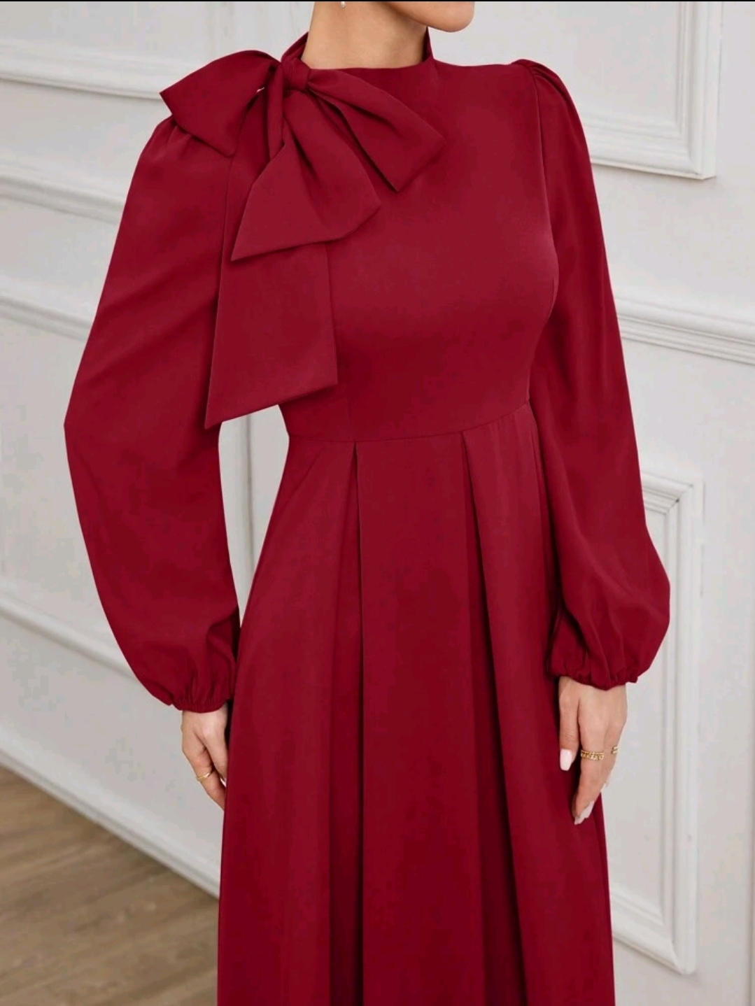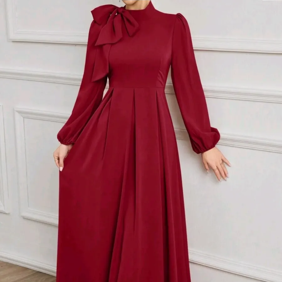فستان موديلي برباط على الكتف وأكمام طويلة للنساء، ماكسي، ملابس نسائية طويلة