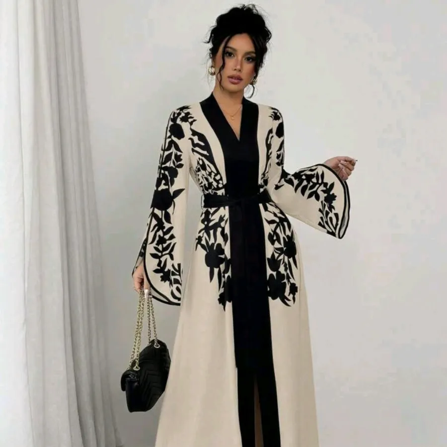 فستان نسائي طويل كاجوال بسيط بأكمام طويلة ، مزين بطباعة بلون سادة، ماكسي، طقم نسائي