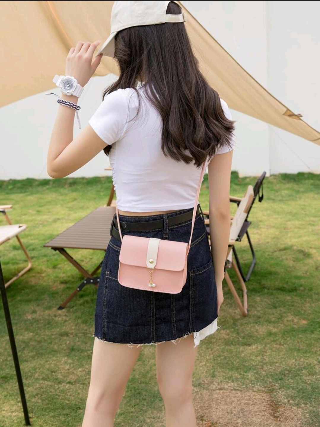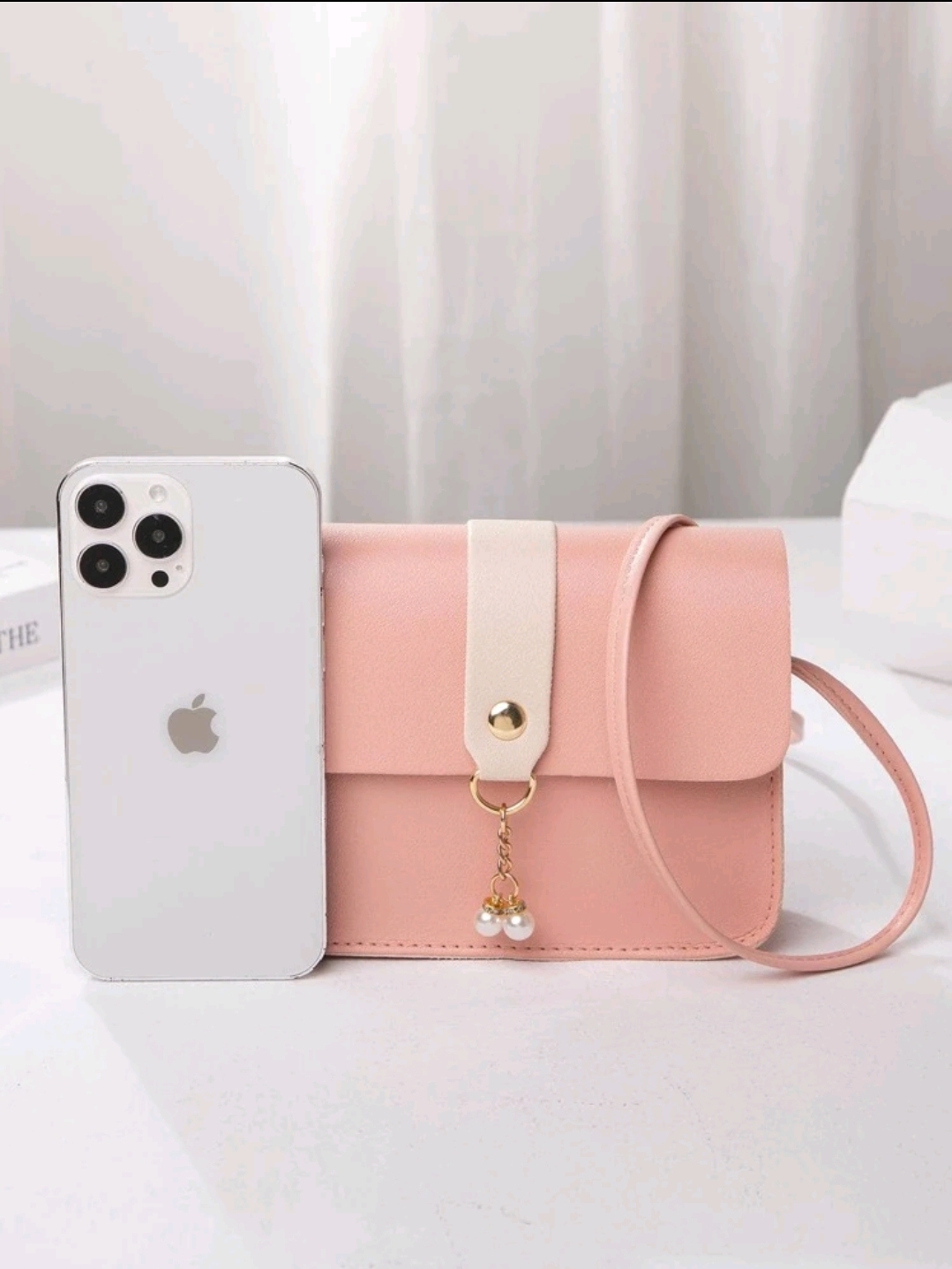 حقيبة كروس بودي صغيرة مربعة من تريندز، جيب للهاتف، مزينة باللؤلؤ، حقيبة أنيقة بألوان متعددة قابلة للطي للفتيات