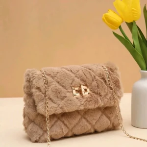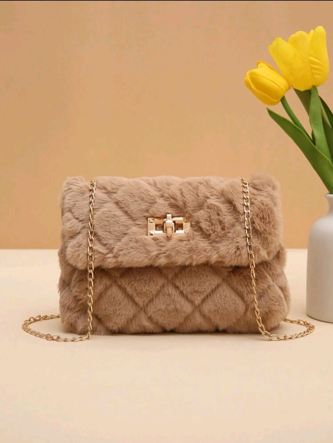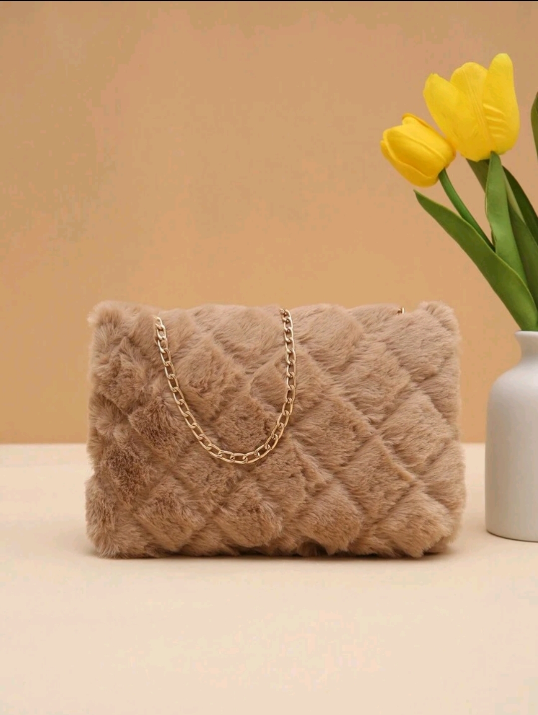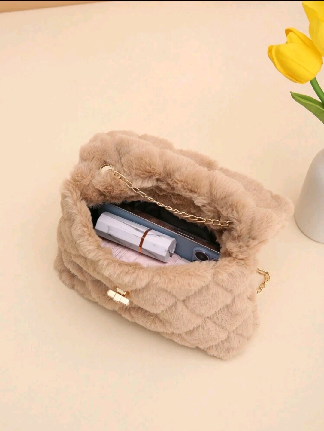 حقيبة كروس بودي من مادة ناعمة، حقيبة كتف نسائية عصرية متعددة الاستخدامات بسلسلة، فروية