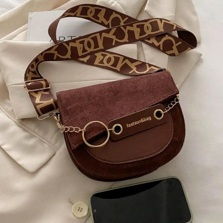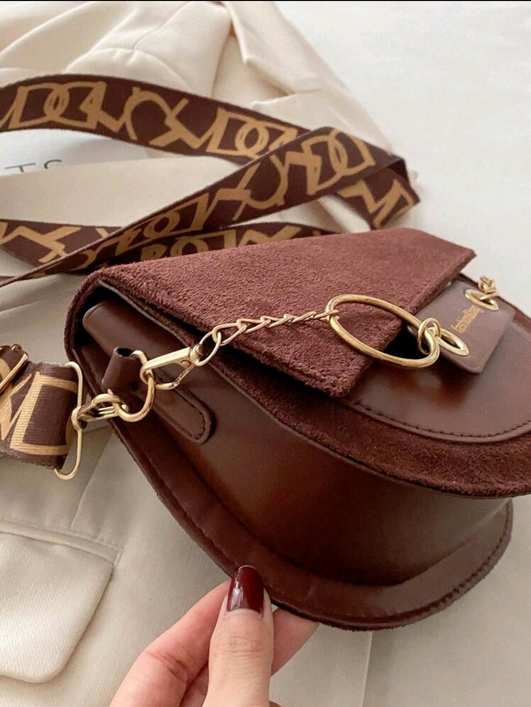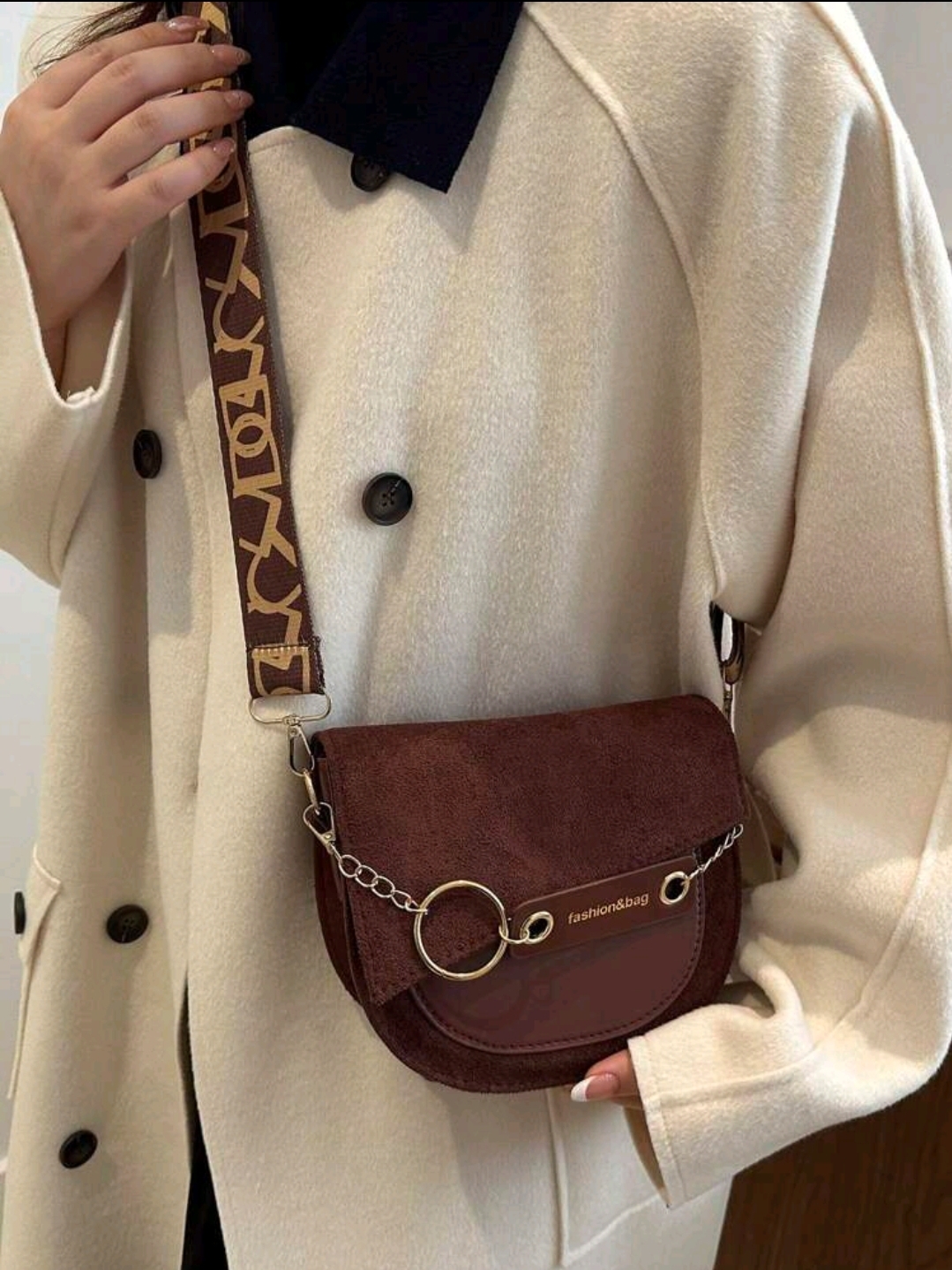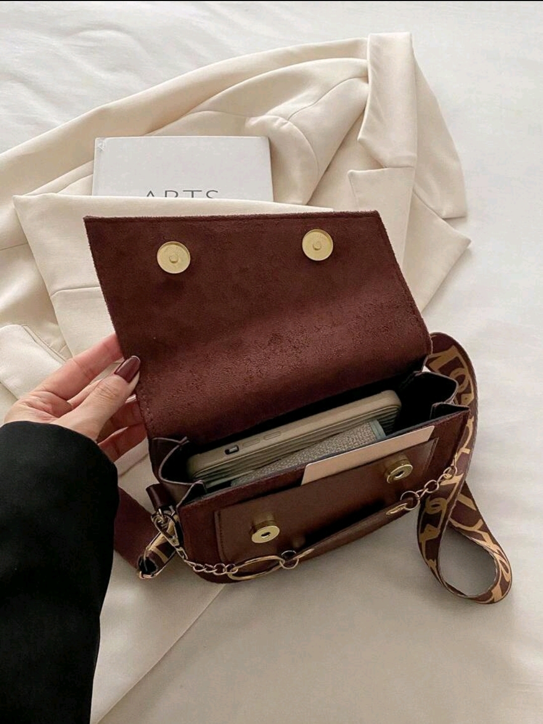 حقيبة كروس بودي صغيرة من البولي يوريثان بغطاء مغناطيسي مزخرفة بسلسلة صغيرة منقوش عليها جلد التمساح، أنيقة للاستخدام اليومي للنساء