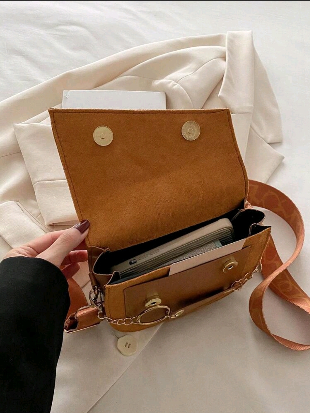 حقيبة كتف صغيرة من جلد التمساح PU مزودة بقفل مغناطيسي وسلسلة صغيرة، أنيقة للاستخدام اليومي للنساء
