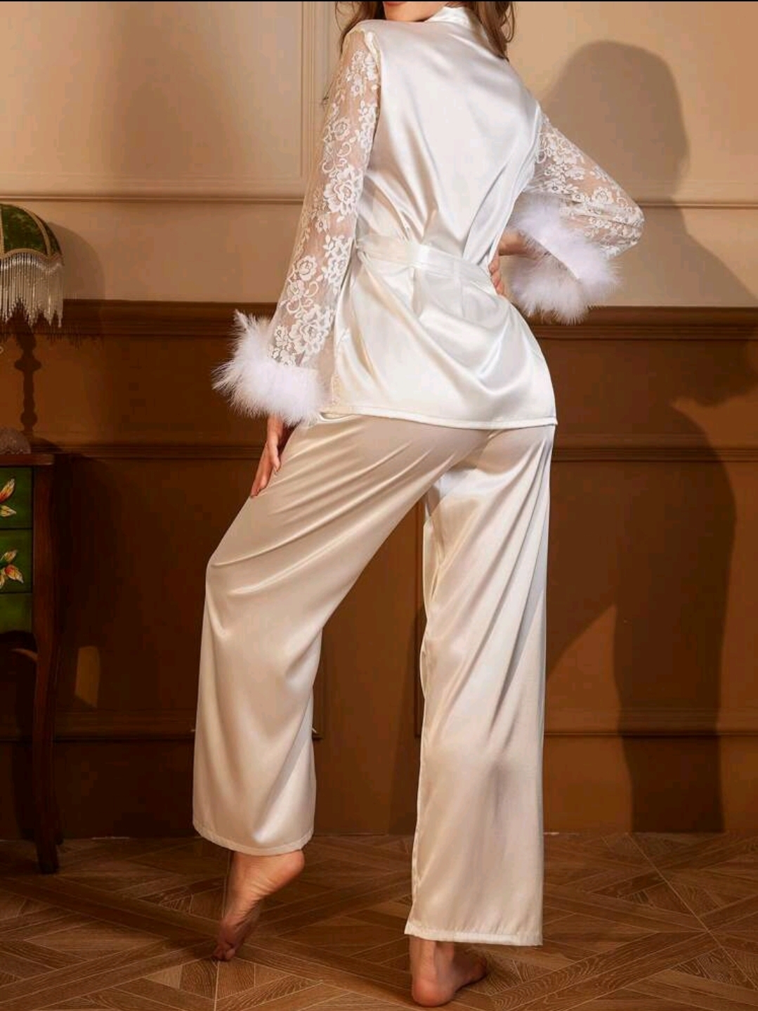 طقم بيجامات نسائي من تريندز بأكمام من الدانتيل المرقعة