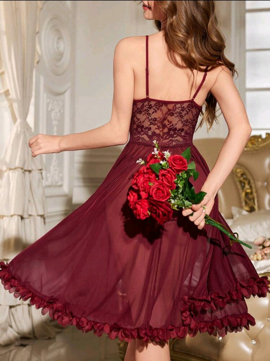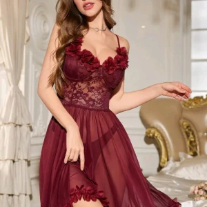 ثوب نوم ماكسي شبكي شفاف مزين بنقشة زهور ثلاثية الأبعاد