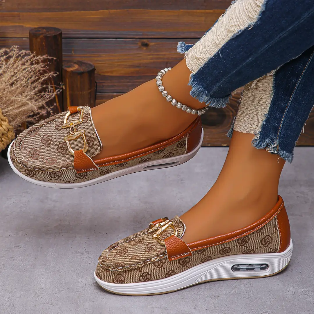 حذاء مسطح بتصميم كلاسيكي للنساء، بجزء أمامي مستدير، بزخارف معدنية عصرية، مجموعة خريف وصيف 2025 الجديدة