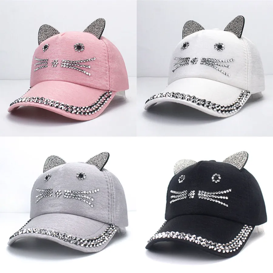 قبعة بيسبول بأذني قطة للأطفال للجنسين، قبعة رعاة البقر، قبعة سناب باك، قبعة كاجوال بنقشة بسكويت ماسية للأولاد والبنات، قبعة شمس من RISALE Sophia Gorro