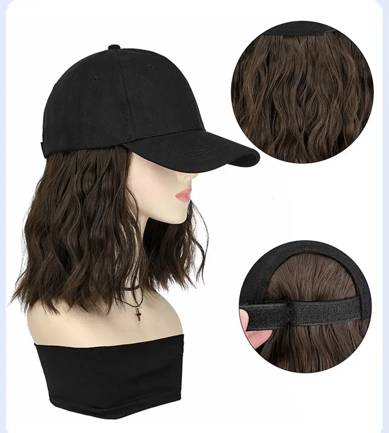 وصلات شعر جديدة على شكل قبعة، شعر مستعار مجعد متوسط الطول للسيدات، قبعات متصلة بغطاء رأس، شعر مستعار صناعي مدبب للنساء